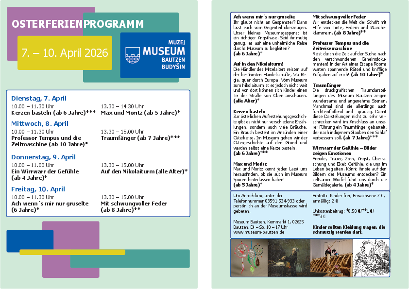 Vom 7. bis zum 10. April können kleinere und größere Kinder in den Winterferien an spannenden Programmen im Museum Bautzen teilnehmen.